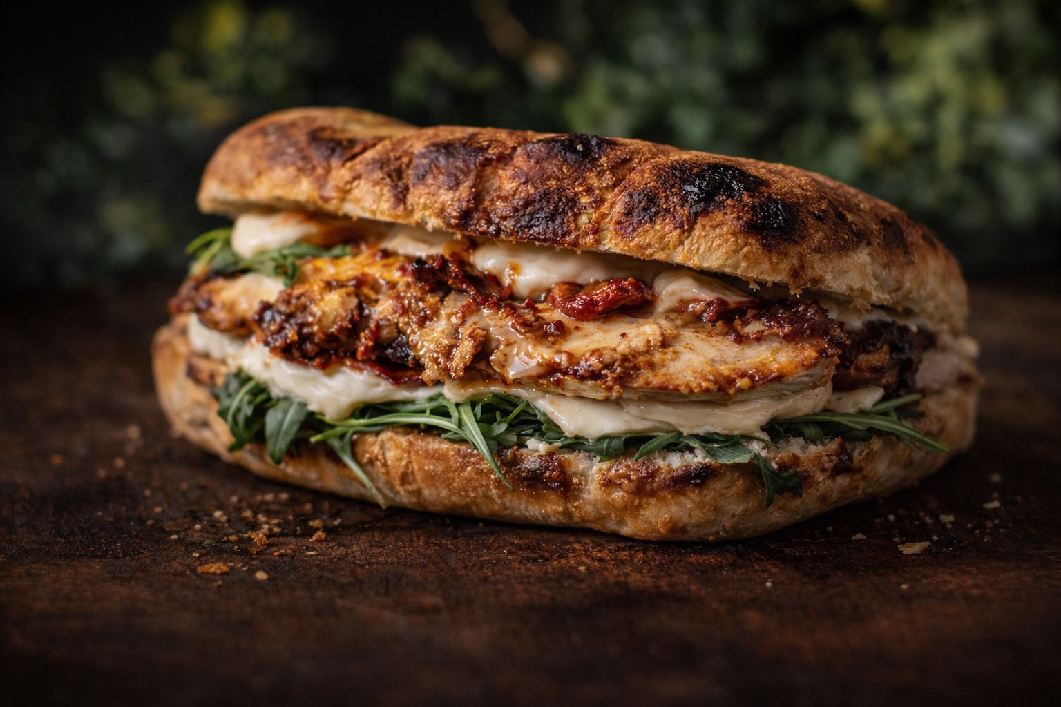 Paine panini 140g, Prosciutto crudo 50g, Mozzarella 60g, Rosii cherry, Rucola, Glazura balsamica 10g