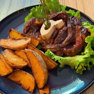 Muschi de vita, Rucola, Rosii cherry, Parmezan, Unt, Sare, Piper